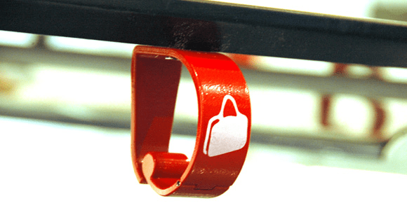 The aim of the design was to make it easy for customers to hang their bags beneath tables and at the bar, but hard for thieves, working from the side, to remove them without being noticed. This seems simple, and the finalised design reflects this.