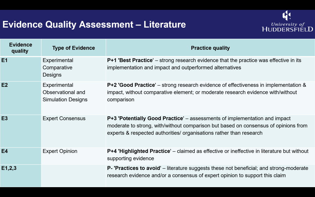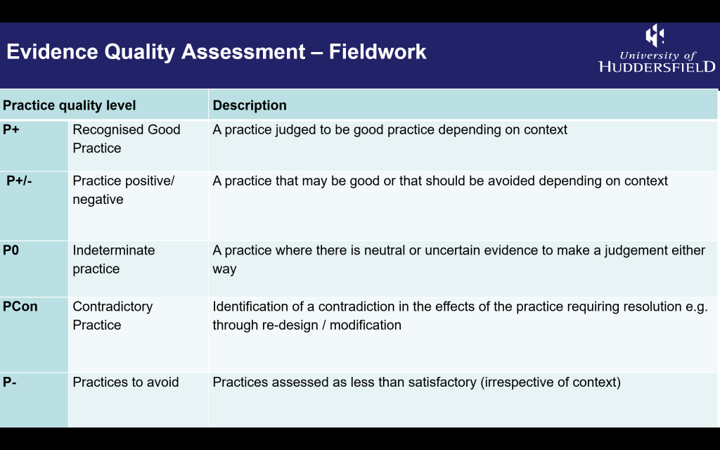 The following two slides show this rating system, for the literature review and the fieldwork: